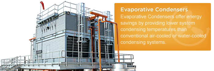 Evaporative condensers provide heat rejection for many types of systems, and the specific application will largely determine which BAC Evaporative Condenser is best suited for a project. The information contained within this section is geared towards the use of evaporative condensers in the HVAC and light industrial markets only. Evaporative condensers are used in these markets to provide lower condensing temperatures and compressor horsepower savings of up to 15 percent when compared with traditional systems. For technical support with a refrigeration application, contact your local BAC Refrigeration Sales Representative.